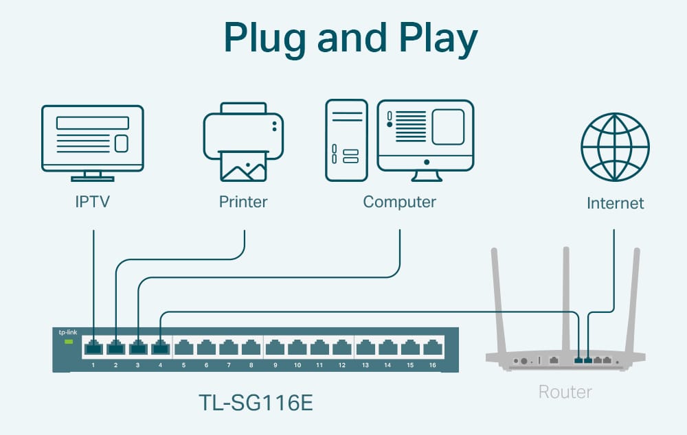 Το Easy Smart Switch της TP-LINK είναι η ιδανική επιλογή για να επεκτείνετε τις θύρες δικτύου Gigabit, στο σπίτι ή το γραφείο, με 16 θύρες RJ45 με ταχύτητα 10/100/1000Mbps.